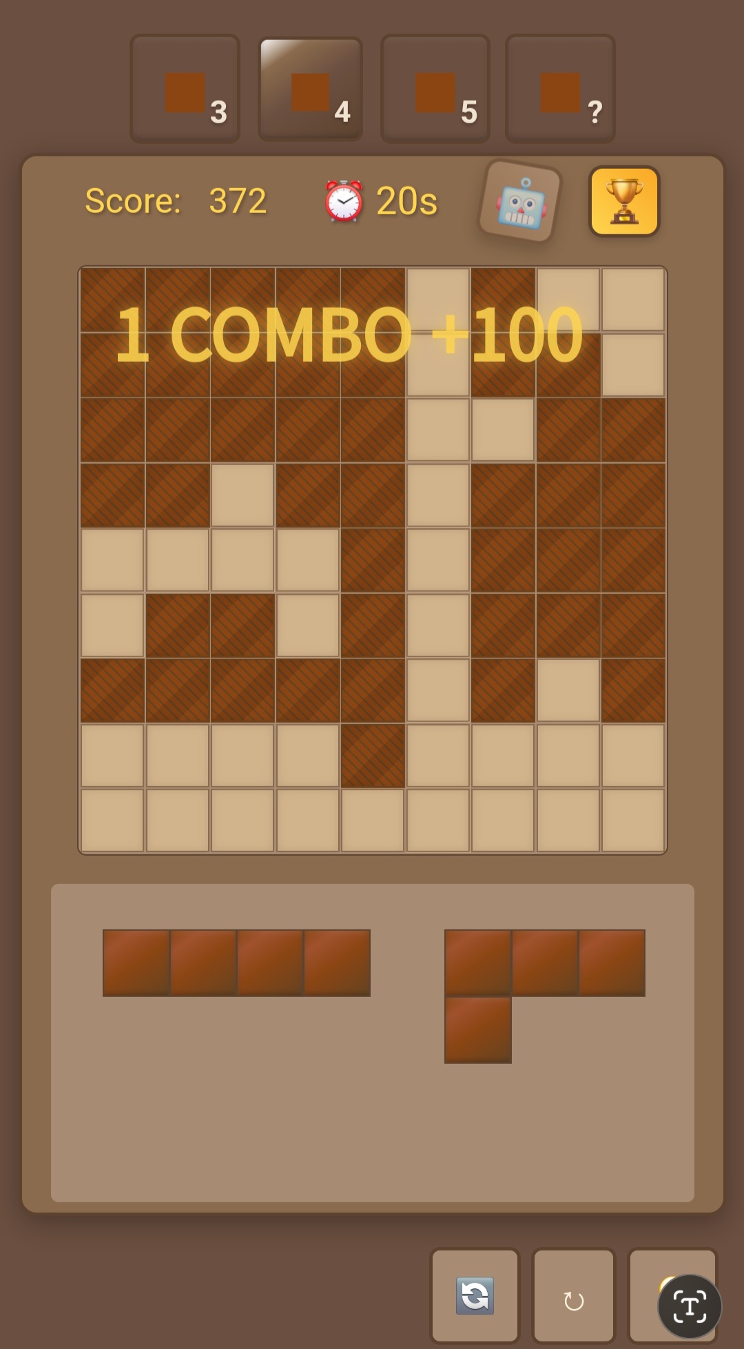 알겠습니다. 사용자가 CSS를 우드 스타일로 변경해 달라고 요청했습니다. 현재 코드에서 body 배경색, 게임 컨테이너, 셀, 블록 등의 색상과 스타일을 수정해야 합니다. 우선 기존 스타일에서 색상 관련 부분을 찾아야 합니다. body의 background는 #1a1a1a에서 우드톤으로 바꿔야 하니 갈색 계열로 선택합니다. 게임 컨테이너의 배경도 어두운 갈색으로 변경합니다. 셀의 배경색은 우드 패턴을 위해 이미지를 사용하는 것이 좋을 것 같습니다. 하지만 이미지 대신 그라데이션을 활용해 나무 질감을 흉내낼 수 있습니다. border 색상은 더 진한 갈색으로 조정합니다. filled 클래스의 셀은 초록색 대신 주황색 계열로 변경해 어울리게 합니다. 블록 셀의 색상도 주황색으로 조정하고 border를 더 진한 색으로 바꿉니다. 점수 표시의 색상도 주황색으로 통일합니다. 추가로 그림자 효과와 둥근 모서리를 조정해 자연스러운 우드 느낌을 내야 합니다. 기존 코드 구조는 유지하면서 색상과 일부 스타일 속성만 변경합니다. 이제 수정할 부분을 찾아서 코드 블록에 반영합니다.